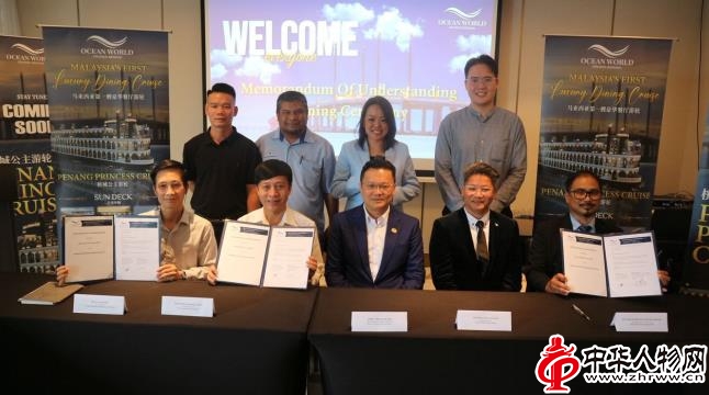马来西亚船级社(SCM)测评与咨询经理莫哈末·马比·莫哈末·罗哈尼与海洋世界控股集团董事经理余启良签署负责审核与全程监督船舶建造,确保工程严格符合各项海上安全标准,并由马来西亚旅游局副主席兼槟城港务局主席拿督杨顺兴见证。