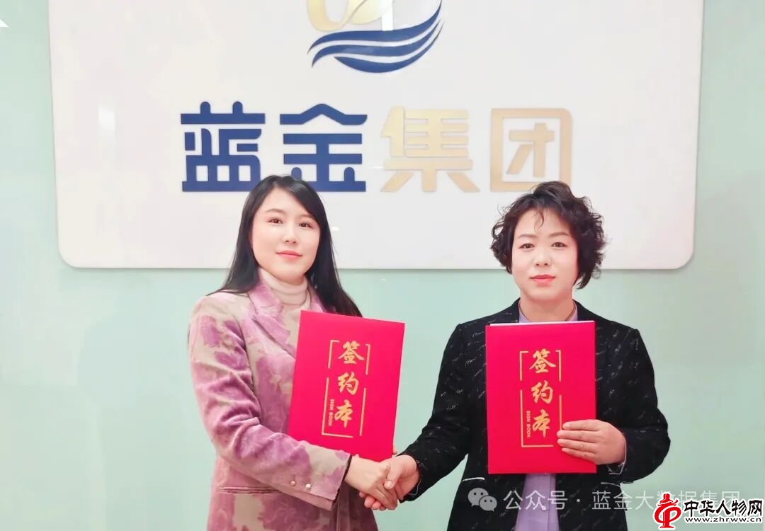 蓝金集团上海分公司董事长宗加燕与黑龙江香草堂绿品药业发展有限公司董事长宋桂华签约合影留念
